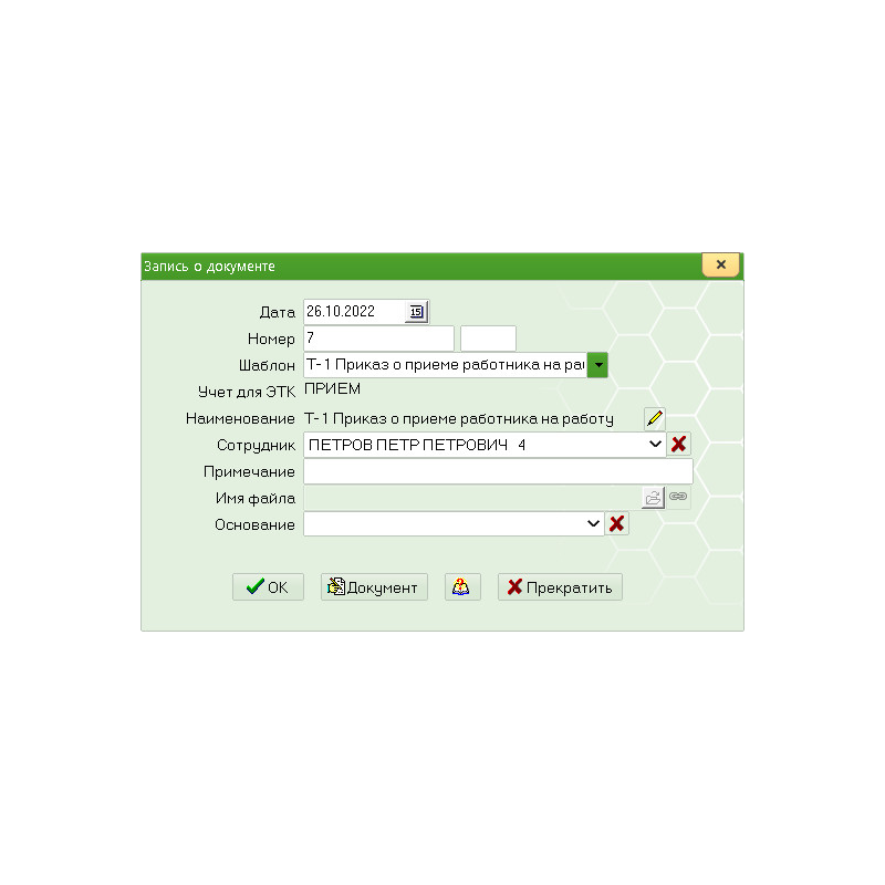 Создание кадровых документов