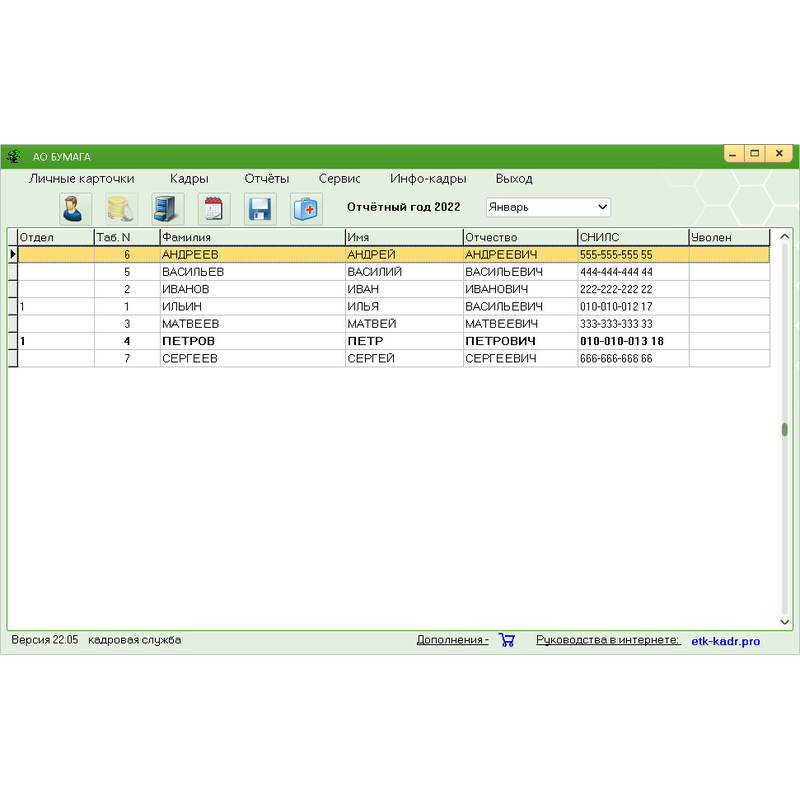 Простой и понятный интерфейс, поймет даже начинающий пользователь ПК. Карточки по старым сотрудникам и их данные в программу загружаются из файла Excel. Данные по новым сотрудникам из скана или фотографии паспорта.