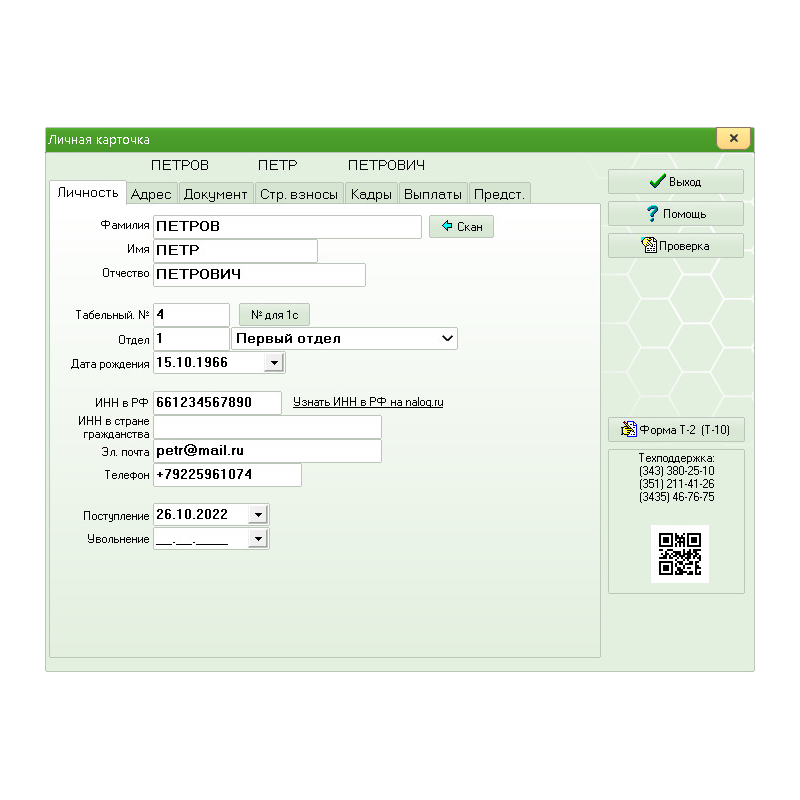 - ведение Личной карточки Т-2