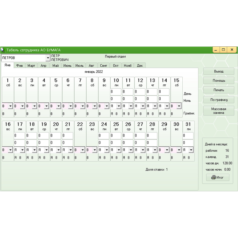 Табель сотрудника