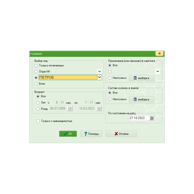 Условия подготовки кадровых отчётов